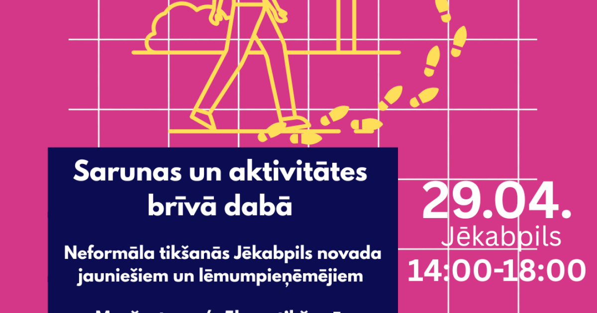 Vai esi gatavs mazliet restartēties, izkustēties un satikt foršus cilvēkus? Pievienojies neformālai tikšanās reizei Jēkabpilī, kur jaunieši un lēmumpieņēmēji satiekas ārpus kabinetiem – reālās sarunās un kustībā.